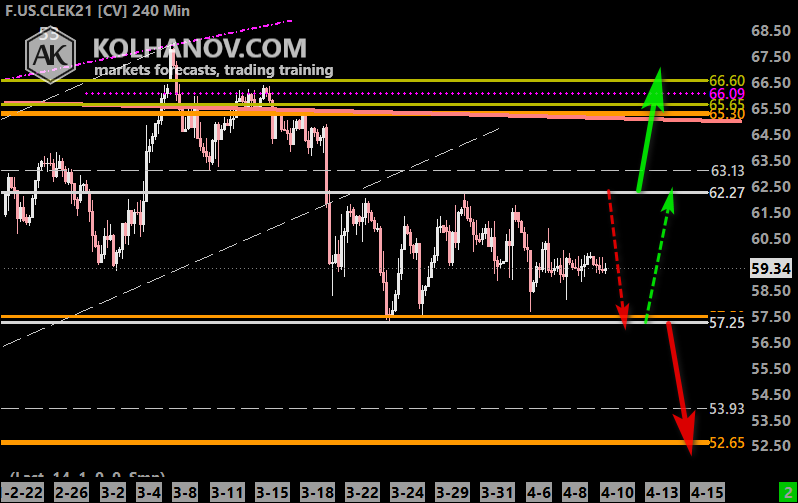 This/Next Week Forecast (April 12 – 16, 2021) Uptrend scenario An uptrend will start as soon, as the market rises above resistance level 62.27, which