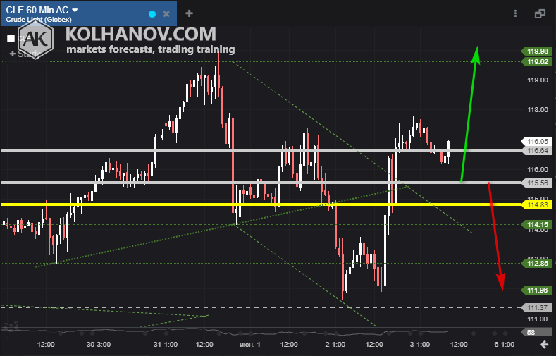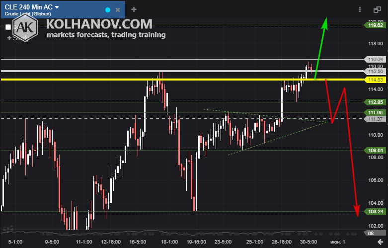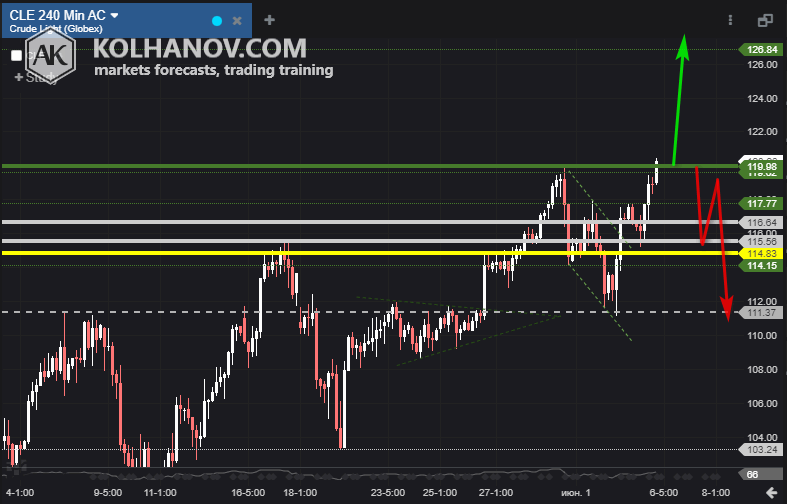 Today’s Forecast, Wednesday, June 3 Uptrend scenario The uptrend may be expected to continue, while market is trading above support level 115.56, which will be