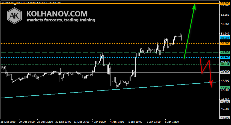 Thursday Forecast Uptrend scenario The uptrend may be expected to continue, while market is trading above support level 49.45, which will be followed by reaching