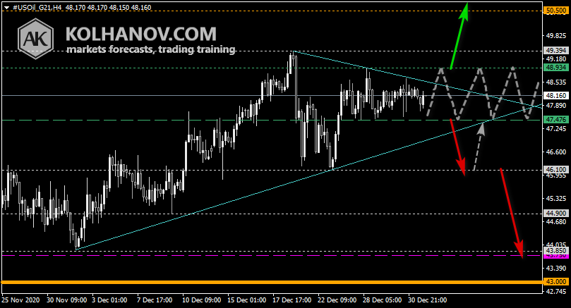 Tuesday Forecast Uptrend scenario The uptrend may be expected to continue, while market is trading above support level 47.15, which will be followed by reaching