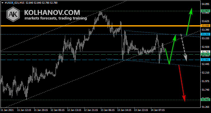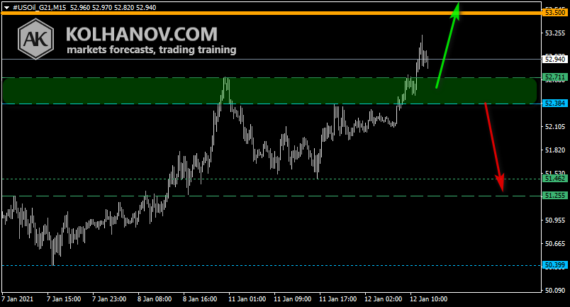 Thursday Forecast Uptrend scenario The uptrend may be expected to continue, while market is trading above support level 52.50, which will be followed by reaching