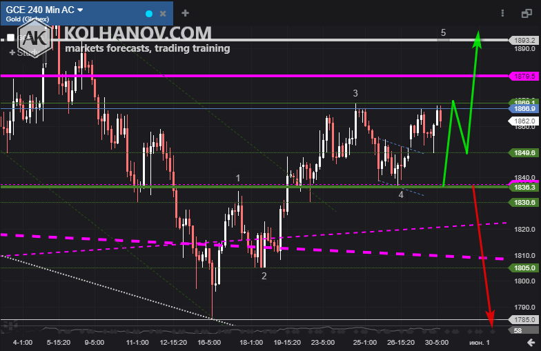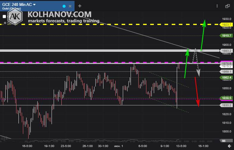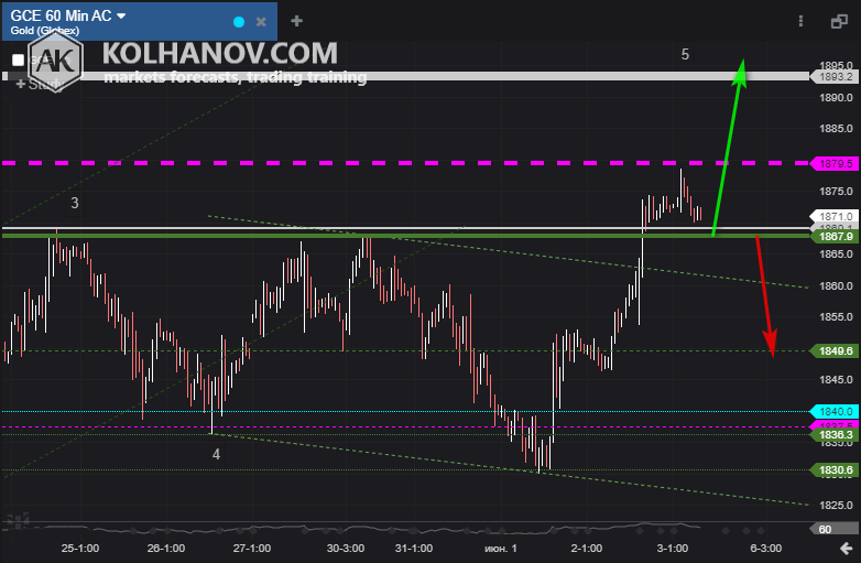 Today’s Forecast, Wednesday, June 3 Uptrend scenario The uptrend may be expected to continue, while market is trading above support level 1869.9, which will be