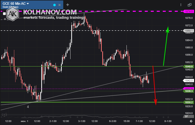 Tuesday Forecast, June 7 Uptrend scenario An uptrend will start as soon, as the market rises above resistance level 1849.6, which will be followed by