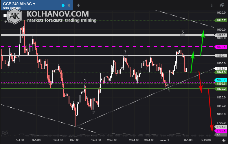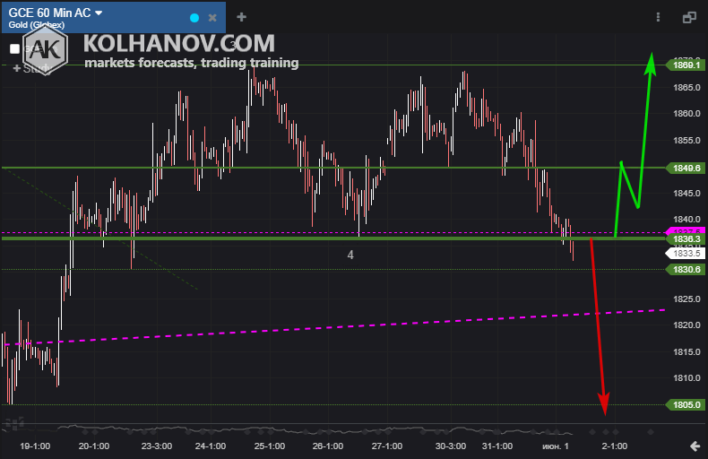 Today’s Forecast, Wednesday, June 1 Downtrend scenario The market is trading along an downtrend with target on 1805. The downtrend may be expected to continue,