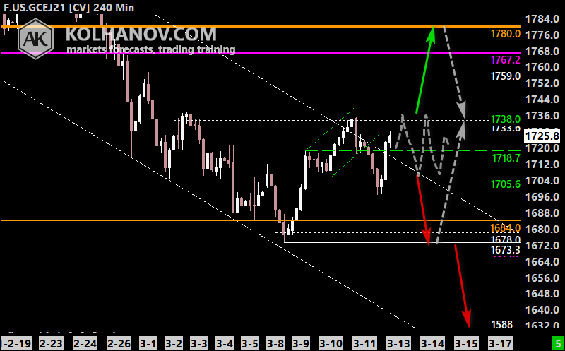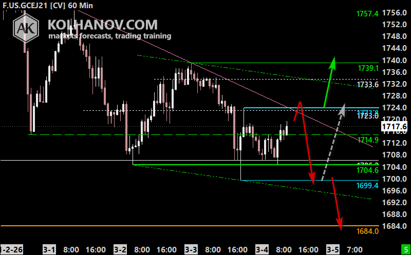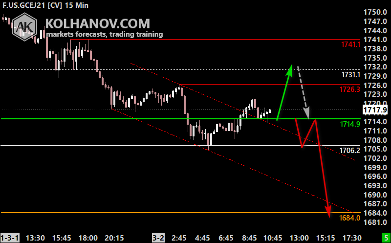 Thursday Forecast Uptrend scenario An uptrend will start as soon, as the market rises above resistance level 1724, which will be followed by moving up