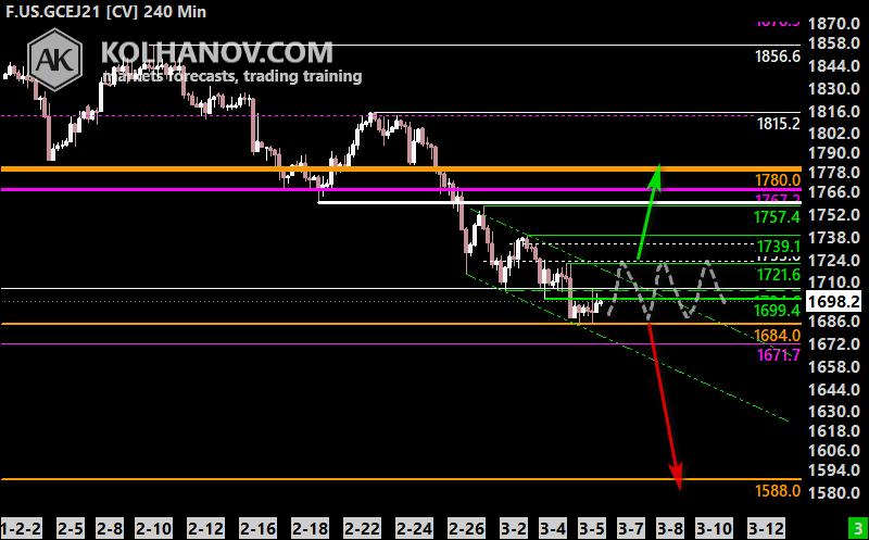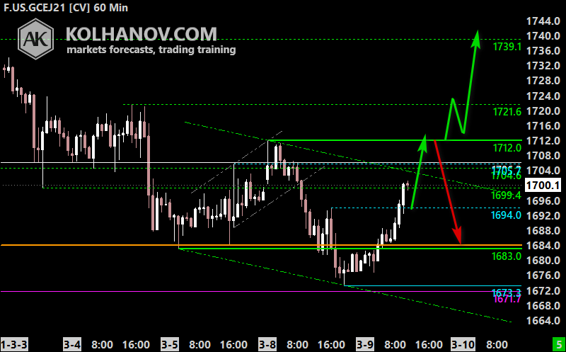 Tuesday Forecast Uptrend scenario The uptrend may be expected to continue, while market is trading above support level1694, which will be followed by reaching resistance