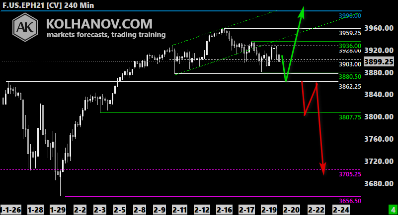 This/Next Week Forecast (February 22 – 26, 2021) Uptrend scenario The uptrend may be expected to continue, while market is trading above support level 3862,