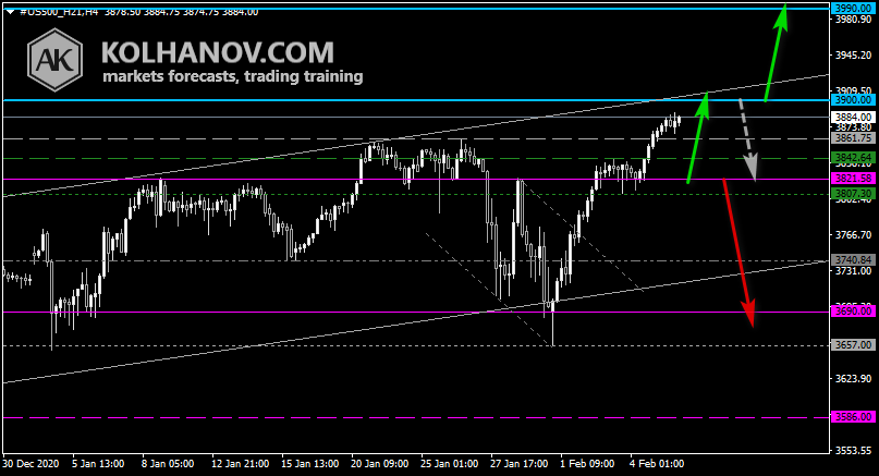 This/Next Week Forecast (February 8 – 12, 2021) Uptrend scenario The uptrend may be expected to continue, while market is trading above support level 3821,