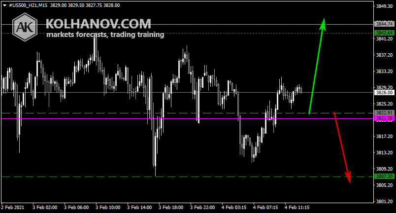 Thursday Forecast Uptrend scenario The uptrend may be expected to continue, while market is trading above support level 3821, which will be followed by reaching