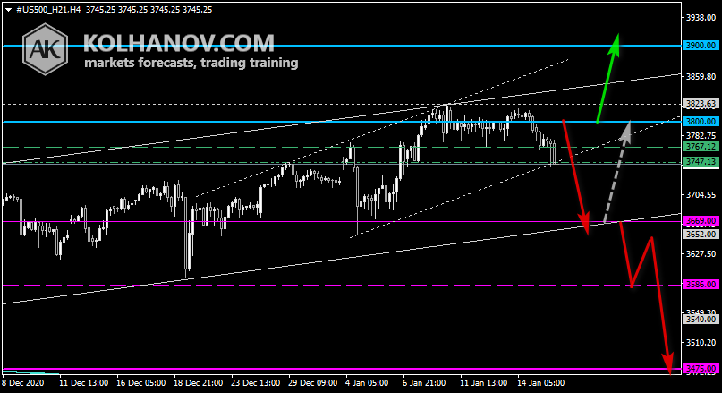 This/Next Week Forecast (January 18 – 22, 2021) Uptrend scenario An uptrend will start as soon, as the market rises above resistance level 3800, which