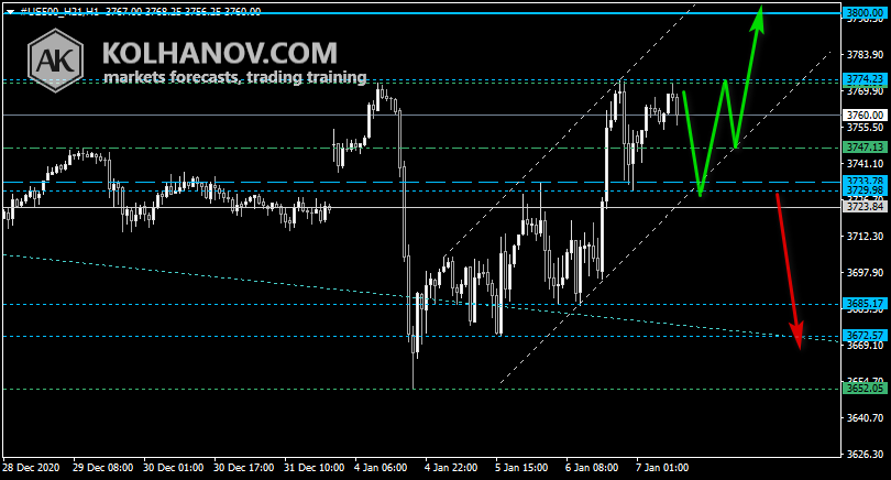 Thursday Forecast Uptrend scenario The uptrend may be expected to continue, while market is trading above support level 3729, which will be followed by reaching