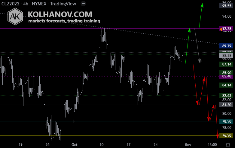 An downtrend will start as soon, as the market drops below support level 87.14, which will be followed by moving down to support level 81.30 and 78.90 – 76.90.