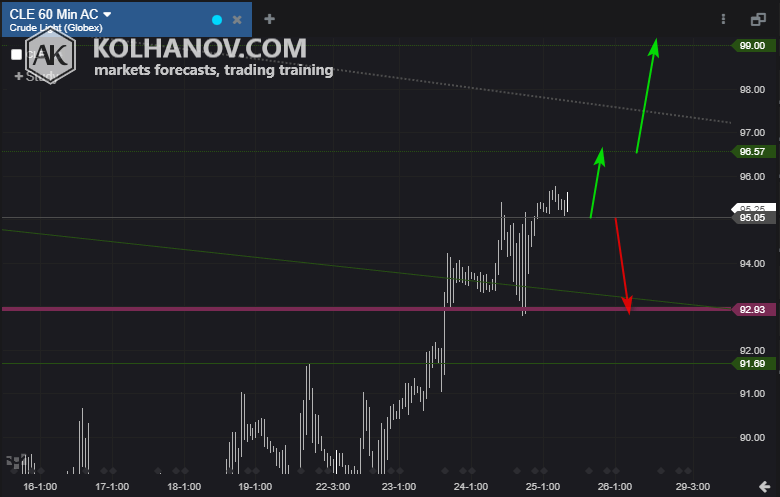 An downtrend will start as soon, as the market drops below support level 95.05, which will be followed by moving down to support level 92.93.
