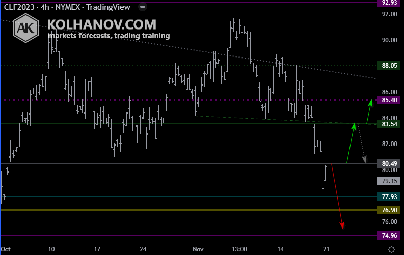 The downtrend may be expected to continue, while market is trading below resistance level 80.49, which will be followed by reaching support level 76.90 – 74.96.
