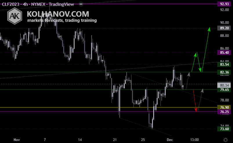 The uptrend may be expected to continue, while market is trading above support level 76,25, which will be followed by reaching resistance level 85,40 and 92,93.