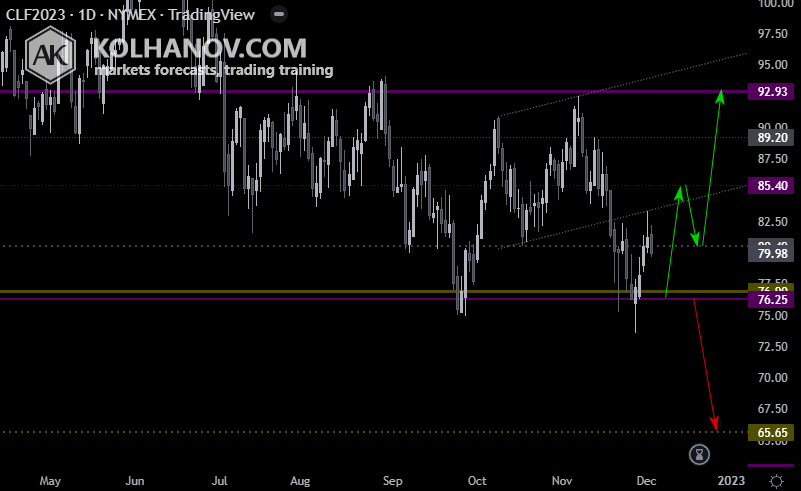 The uptrend may be expected to continue, while market is trading above support level 76,25, which will be followed by reaching resistance level 85,40 and 92,93.