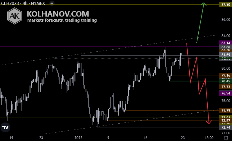 An downtrend will start or from resistance 83, or as soon, as the market drops below support level 76.70, which will be followed by moving down to support level 72 – 70.