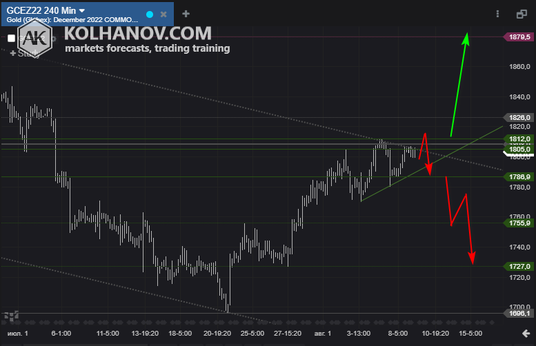 An uptrend will start as soon, as the market rises above resistance level 1812, which will be followed by moving up to resistance level 1879.