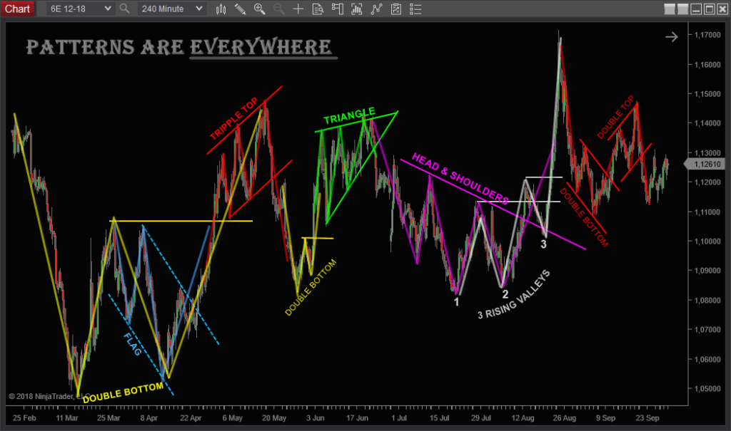 There are 13 types of patterns and 13 corresponding inverted variants (26 in total). These patterns are found everywhere and comprise 80% of the charts.