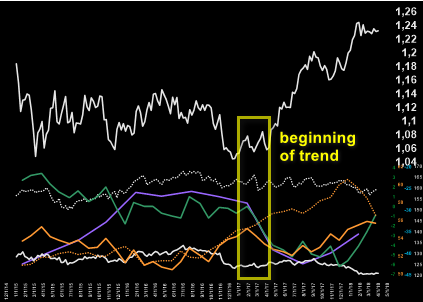 A shift in economic indicators allows determining not only the fair price and the price of the imbalance, but also the very moment of the trend beginning and its end.
