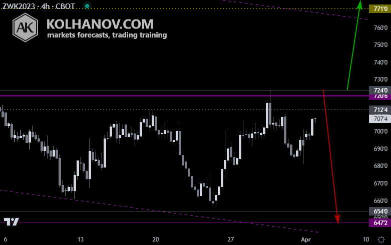 An uptrend will start as soon, as the market rises above resistance level 724, which will be followed by moving up to resistance level 771 and 805.